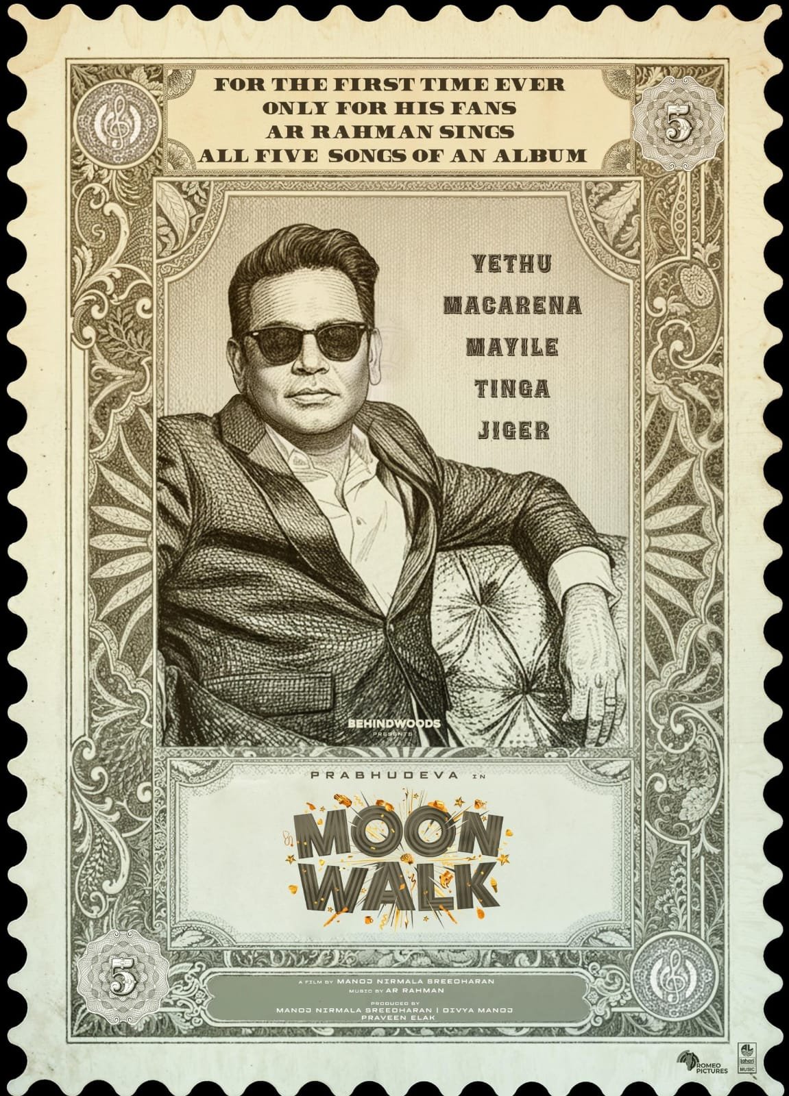 Behindwoods புரொடக்ஷன்ஸ் தயாரிக்கும் ‘மூன்வாக்’ படத்தில் முதல் முறையாக படத்தின் ஐந்து பாடல்களையும் பாடியுள்ளார் இசைப்புயல் ஏ. ஆர். ரஹ்மான்