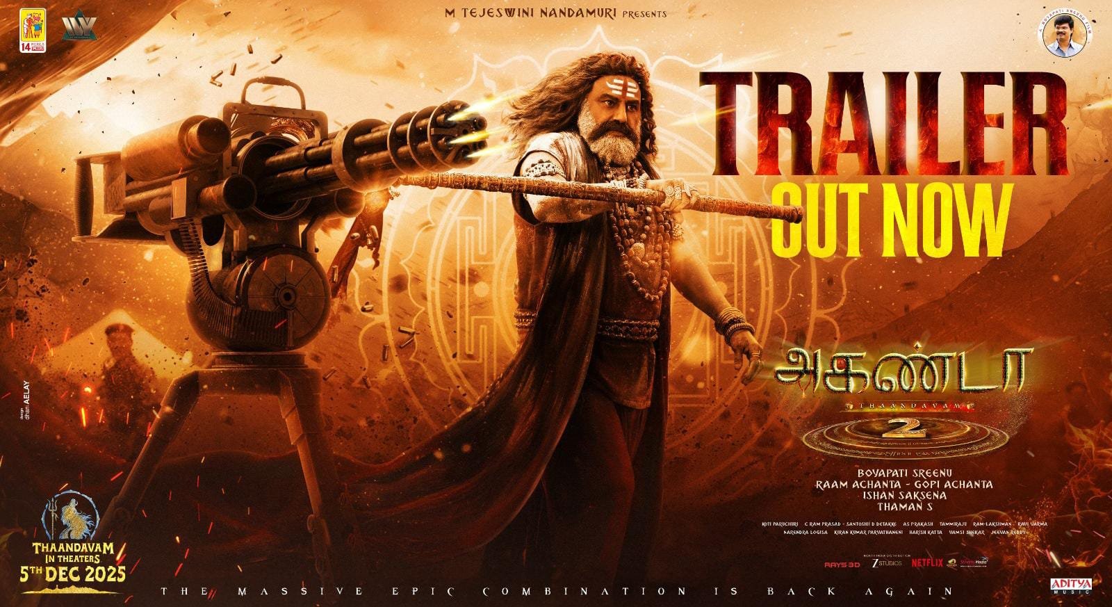 *அகண்டா 2 – தாண்டவம் திரைப்படம் வரும் டிசம்பர் 5 ஆம் தேதி திரையரங்குகளில் வெளியாகிறது.*