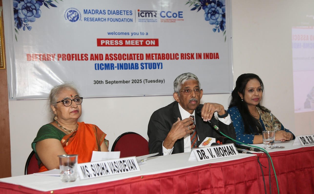 Chennai, 30th September 2025: According to the latest evidence generated from the Indian Council of Medical Research-India Diabetes (ICMR-INDIAB) study published in Nature Medicine, India’s rapidly changing eating habits are fueling dramatic rises in diabetes and obesity. The cross-sectional survey was conducted in collaboration with Madras Diabetes Research Foundation (MDRF), and included a nationally representative sample of 1,21,077 Indian adults from urban and rural areas of 36 states, union territories and the National Capital Territory (NCT)-Delhi. Detailed dietary data from every fifth participant, was used to characterize India’s dietary profile across regions and examine inter- and intra-regional differences in macronutrient intakes and associated metabolic risk.