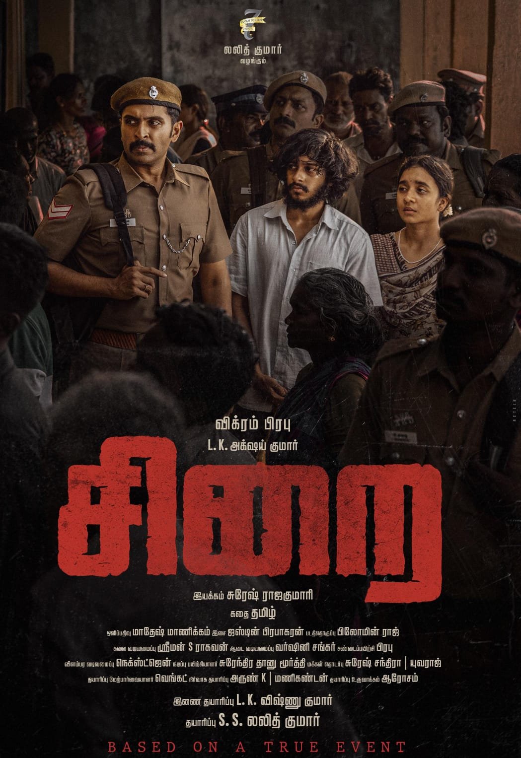 செவன் ஸ்கிரீன் ஸ்டுடியோ (Seven Screen Studio) சார்பில், தயாரிப்பாளர் SS லலித் குமார் தயாரிப்பில், நடிகர் விக்ரம் பிரபு நடிப்பில், அறிமுக இயக்குநர் சுரேஷ் ராஜகுமாரி இயக்கத்தில், மாறுபட்ட களத்தில் உண்மைச் சம்பவத்தை அடிப்படையாக வைத்து உருவாகியுள்ள “சிறை” படத்தின் அசத்தலான ஃபர்ஸ்ட் லுக்கை, முன்னணி இயக்குநர் லோகேஷ் கனகராஜ் சமூக வலைத்தளம் வழியே வெளியிட்டுள்ளார்.