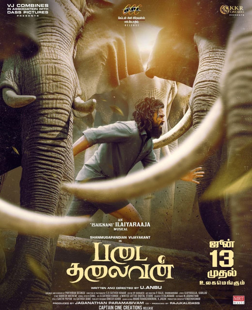 VJ COMBINES தயாரிப்பில், கேப்டன் விஜயகாந்த் அவர்களின் மகன் நடிகர் சண்முக பாண்டியன் நடிப்பில், இயக்குநர் U அன்பு இயக்கத்தில், காட்டு யானைகளின் வாழ்வியல் பின்னணியில், அங்கு வாழும் மக்களின் வாழ்க்கைக் கதையை சொல்லும் படமாக உருவாகியுள்ள படம் படை தலைவன். இப்படத்திற்கு இசை இசைஞானி இளையராஜா, ஒளிப்பதிவு எஸ் ஆர் சதீஷ்குமார், படத்தொகுப்பு அகமத்