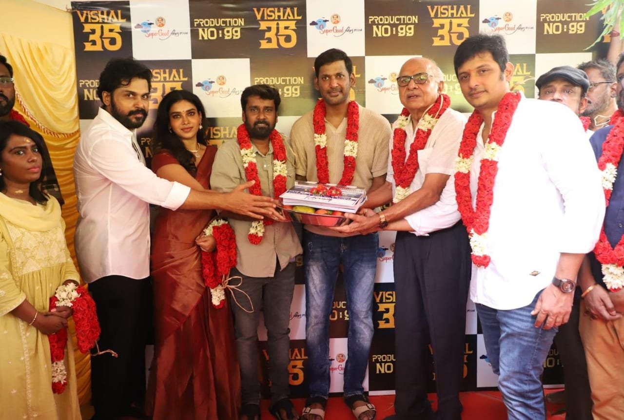 விஷால்35 சூப்பர்குட் பிலிம்ஸ்99 என்ற படத்தின் பூஜை நடைபெற்றது. இந்த விழாவில் நடிகர்கள் கார்த்தி, தம்பி ராமையா, அர்ஜெய், இயக்குனர் வெற்றிமாறன், மணிமாறன், சரவண சுப்பையா, M சரவணன், மோகன், விநியோகஸ்தர் திருப்பூர் சுப்ரமணியம், ஒளிப்பதிவாளர் ஆர்தர் A வில்சன், ஆகியோர் சிறப்பு விருந்தினர்களாக கலந்து கொண்டனர் .